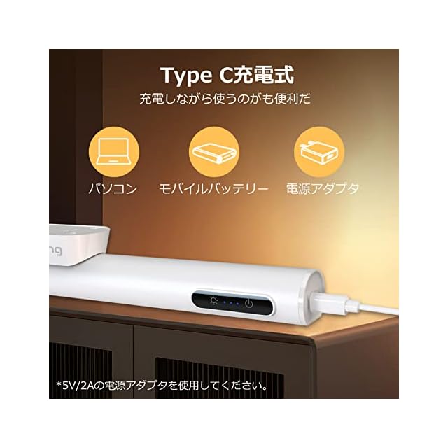 【Type C充電式・4000mAバッテリー容量・残量が一目瞭然】:デスク ライトは最低電力で60時間使うことができます、最高電力で10時間使うことができます。急速充電設計、充電完了まで4時間しかかかりません。LEDランプによって残量をはっきりと確認できます。Type C充電で、充電しながら使うのがも便利だ。*5V/2Aの電源アダプタを使用してください。