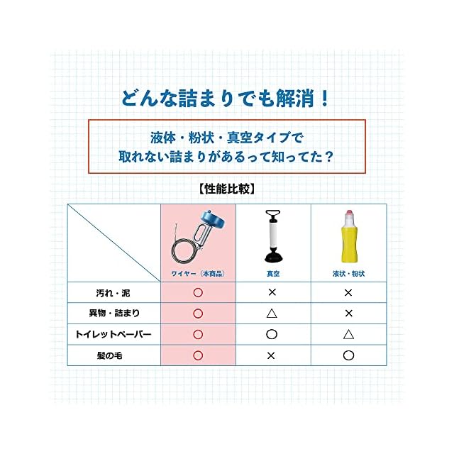 【業者要らず】業者に頼らずに水回りのトラブルを解消できるワイヤー式パイプクリーナー。液体タイプやラバーカップで解消できない詰まりや汚れも、ワイヤーで取り除くことが可能です。