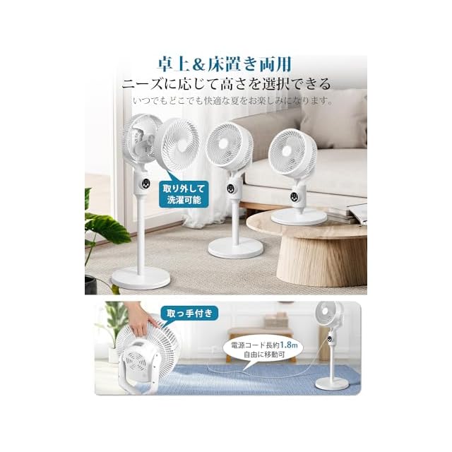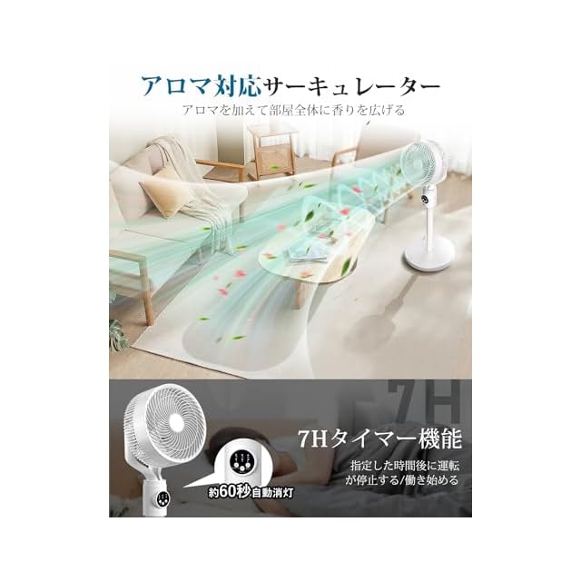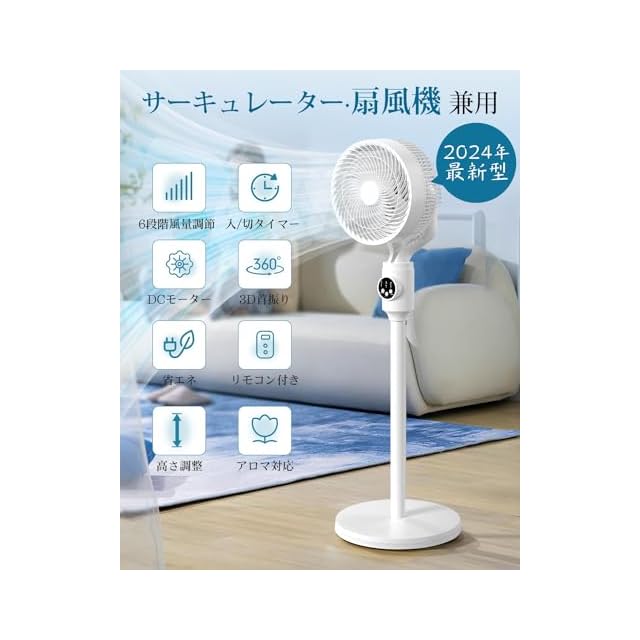 商品名:サーキュレーター 扇風機 兼用 【2025節電対策&3D首振り】 風量6段階調節 扇風機 DCモーター 静音 360度首振り リモコン付き アロマ対応 リビング 卓上 両用 さーきゅれーたー 省エネ 7Hタイマー付き 60S自動消灯 高さ調整可能 パワフル送風 オシャレ 24畳 お手入れ簡単 暑さ対策 オールシーズン活躍 換気/空気循環/部屋干し 梅雨 除湿 衣類乾燥 PSE認証済