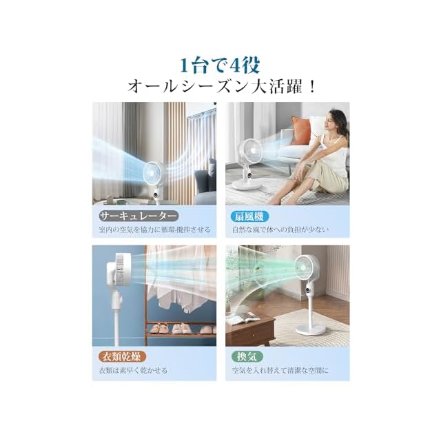 【1台4役サーキュレーター&オールシーズン通用】2024年新登場のAooDenサーキュレーター!夏のリビング扇風機のみでの使いやすさはもちろん、初春と梅雨期に換気、衣類乾燥・部屋干しや空気循環を行うさーきゅれーたーとしても使えます。サーキュレーター 扇風機とエアコンを併用することで省エネだけでなく、部屋の空気を効果的に循環させ、室内の温度を均一に保ちます。オールシーズン快適にご使用いただけます。