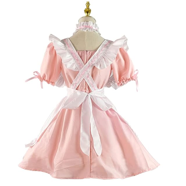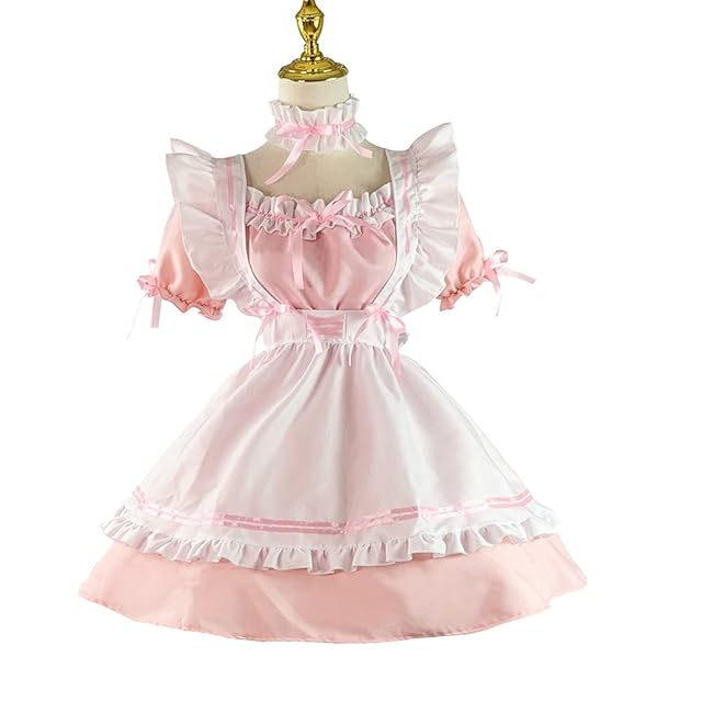 [ANONIE] メイド服 コスプレ仮装 初心者 セット かわいい コスチューム ホワイト+ブラック 豪華セット (pink, XL)