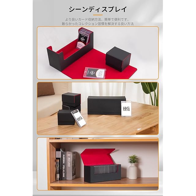 商品名:HG CHASING TRIBE デッキケース トレカケース マグネットローダー 用 ケース PU レザー 33枚のマグネットローダーを格納できます カード800枚収納 大容量 スリーブ対応 トレーディングカードケース (大型デッキケース1個+小型デッキケース3個, 黒、赤)