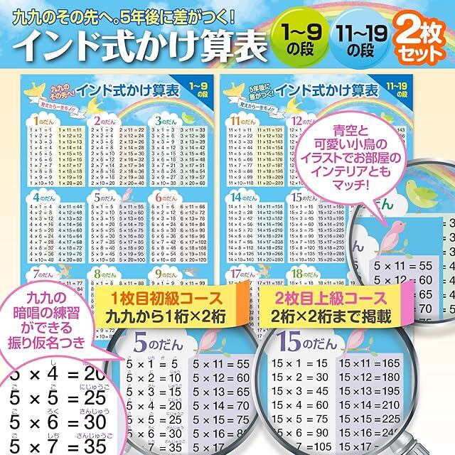 色:地図/インド式かけ算(1-9の段&11-19の段)青空 お風呂ポスター2種類セット
