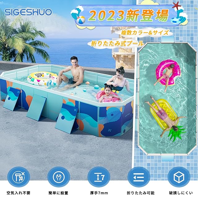 SIGESHUO プール 大型 家庭プール 空気入れ不要 折り畳み式 大型プール 深い 四角い プール大きめ 折り畳みプール 巨大プール 大型プール 大きいプール 子供用プール 特大プール 収納便利 子供 大人 水遊び 家庭用 大人用 自宅用 庭 ベランダ 室内 砂場 庭 猛暑対策