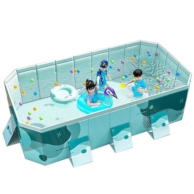 SIGESHUO プール 大型 家庭プール 空気入れ不要 折り畳み式 大型プール 深い 四角い プール大きめ 折り畳みプール 巨大プール 大型プール 大きいプール 子供用プール 特大プール 収納便利 子供 大人 水遊び 家庭用 大人用 自宅用 庭 ベランダ 室内 砂場 庭 猛暑対策 (185x138x53cm, グリーン)