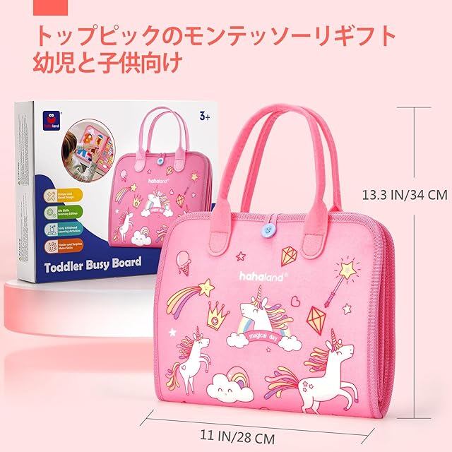 【旅行に便利】11×9インチのサイズで、持ち運びやすいハンドル付きにデザインされています。ほとんどのおむつバッグにぴったり収まり、飛行機や車での旅行に最適な静かなオプションです。お子様の小さな手と心を忙しく保ちます。1歳から4歳の女の子への誕生日やクリスマスプレゼントを探しているなら、hahalandビジーボードは、散らからず、騒がしくもなく、スクリーンタイムにもならない理想的なギフトです。さらに、重要なスキルの育成にも役立ちます。