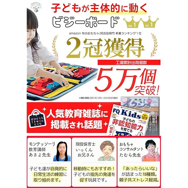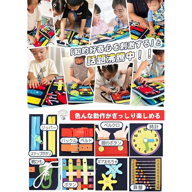 モンテッソーリ おもちゃ【日本正規品】知育玩具 【知育のプロ推薦】1歳 2歳 3歳 4歳 5歳 6歳 【教育雑誌掲載】 ビジーボード 男の子 女の子 誕生日プレゼント お着替えの練習 入園準備【食品衛生法試験合格】 (ブルーセット品, 2, 点) | Trend Design BASE店