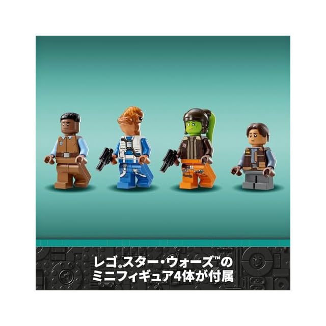 レゴ スター・ウォーズ ミニフィギュア4体 – 「ヘラ・シンドゥーラ将軍」「ベイタ中尉」(各ブラスターピストル付き)、「ジェイセン・シンドゥーラ」「ホーキンス副操縦士」のほか、「チョッパー(C1-10P)」のドロイドフィギュアが付属