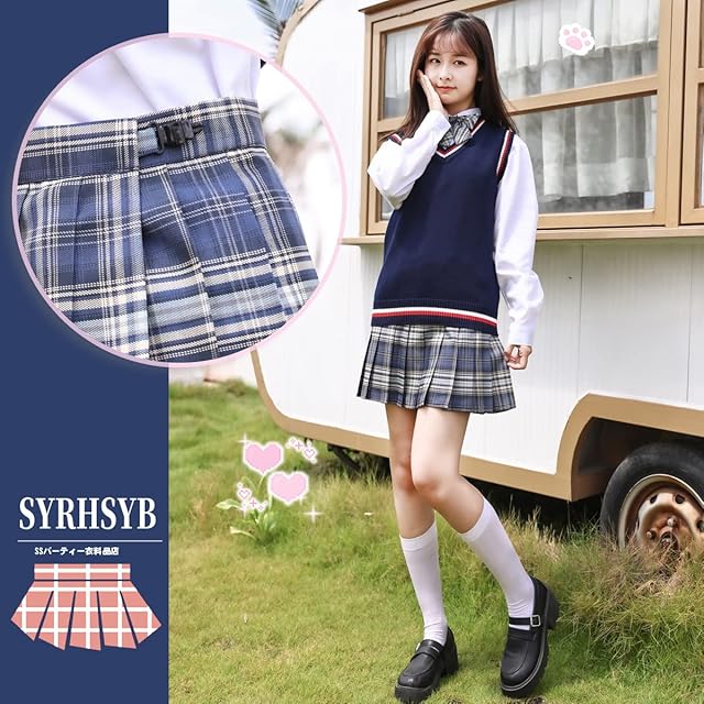 [HOLOUN] 制服 スカート ミニ プリーツスカート女子高生 JK 学生服 ハイウエスト コスプレ遊園地 学園祭 文化祭 パーティ チェック スカート(日光浴海, S) | Trend Design BASE店