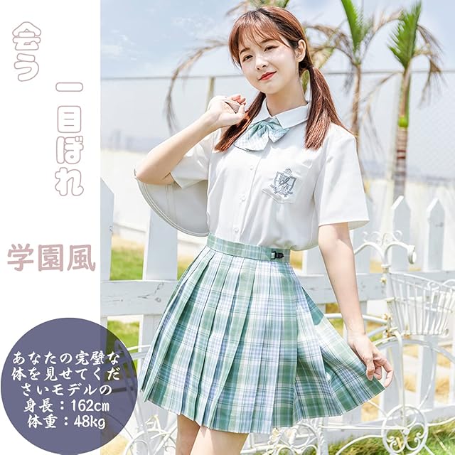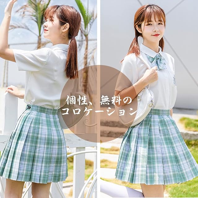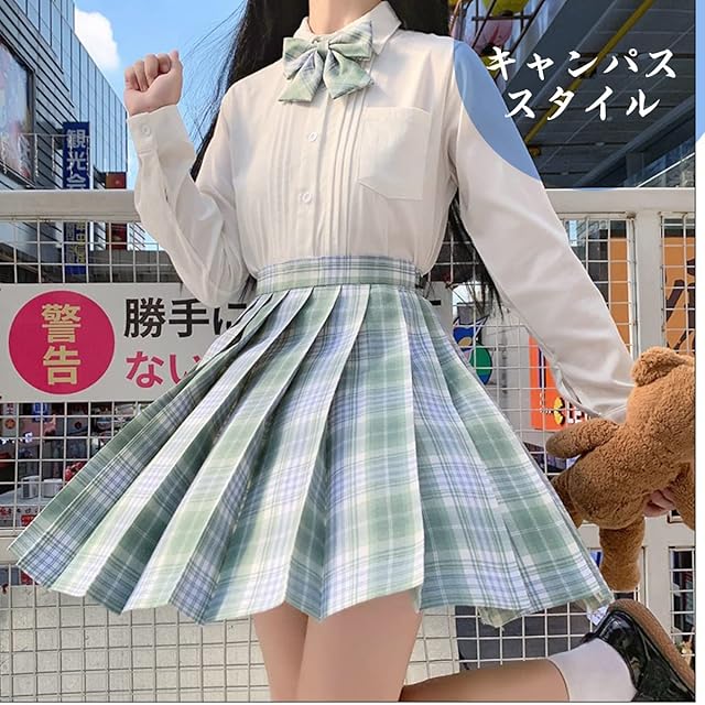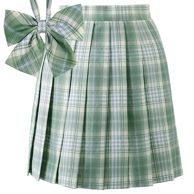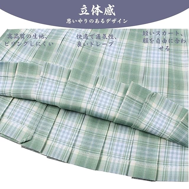 [HOLOUN] 制服 スカート ミニ プリーツスカート女子高生 JK 学生服 ハイウエスト コスプレ遊園地 学園祭 文化祭 パーティ チェック スカート (杉, L) | Trend Design BASE店