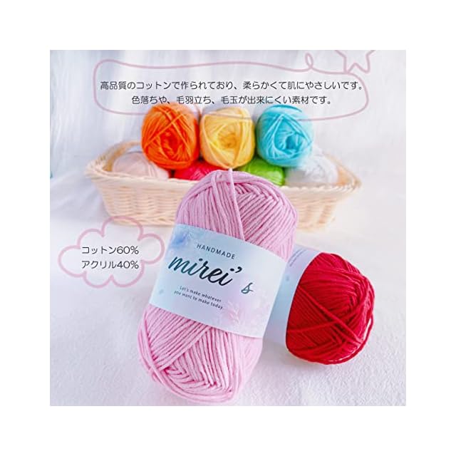 素材:コットン60%、アクリル40% 高品質のコットンで作られており、柔らかくて肌にやさしいです。毛玉が出にくい、毛羽立ちしにくい素材です。