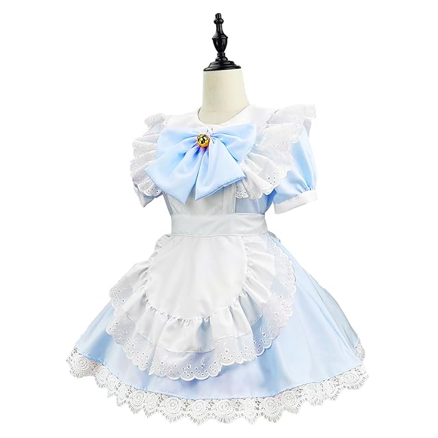 [MEYOIJK] メイド服 コスプレ 萌え コンカフェ メイド 定番 ショート丈 可愛い レース メイドコスチューム 5点セット ロリータ ワンピース レディース メンズ 大きいサイズ 仮装 ハロウィン 女装 人気 学園祭 撮影 (水色, 4XL) | Trend Design BASE店