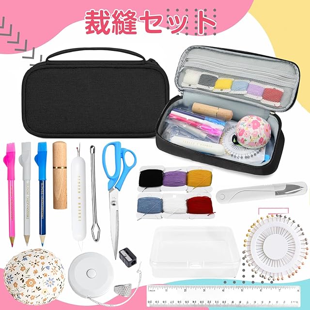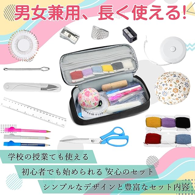 商品名:裁縫セット 小学生 ソーイングセット 女の子 男の子 小学校 裁縫道具 セット 携帯式 刺繍 手芸 家庭用 裁縫道具セット お裁縫セット 裁縫練習 ブラック