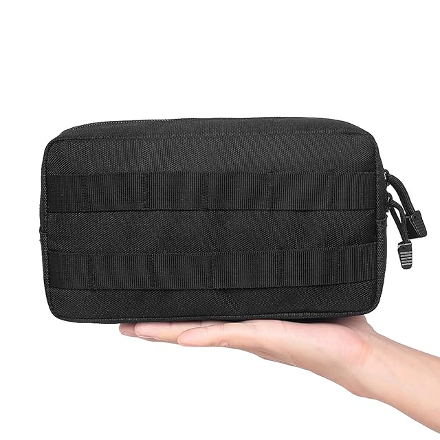 【大容量】-- スマホ、ペットボトル、懐中電灯、メガネ等をコンパクト収納できるミリタリーポーチ。