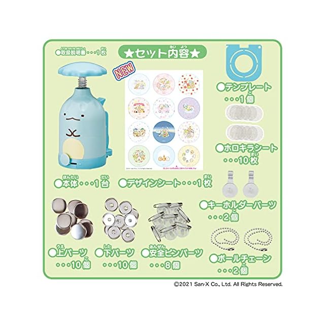 素材をセットしてハンドルを回すだけで、キラキラのすみっコぐらしバッチがカンタンに作れます。