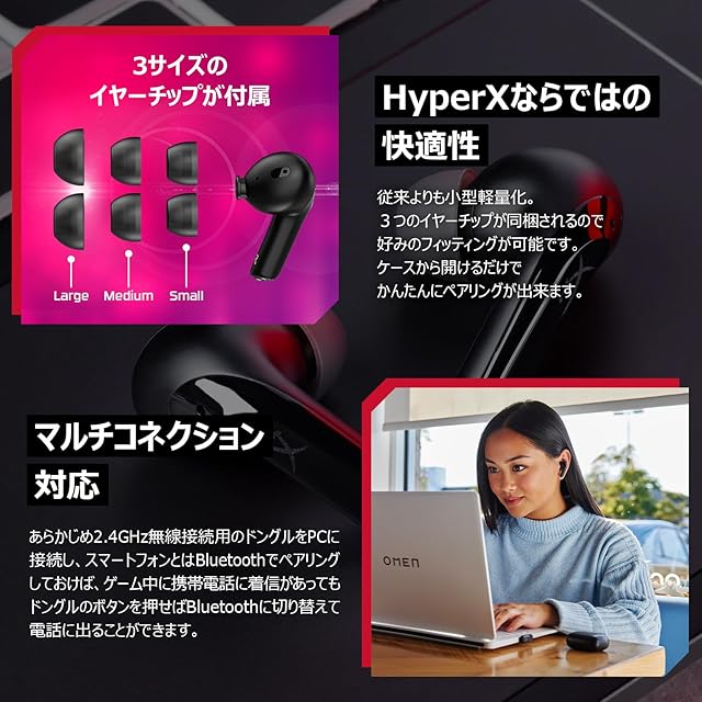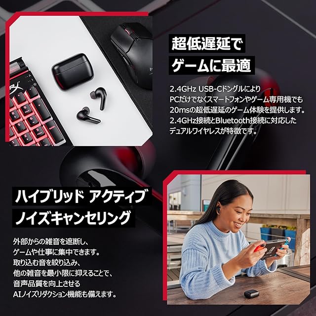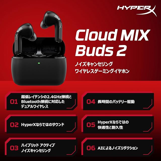 商品名:HyperX Cloud MIX Buds 2 ノイズキャンセリング トゥルーワイヤレスイヤホン Bluetooth 超低レイテンシ20ms 2.4 GHz 最大26時間バッテリー駆動 2年 7D0A4AA