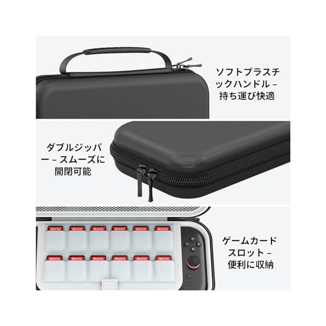 【高品質EVA素材でSwitch 2をしっかり保護】EVA素材 耐衝撃、耐磨耗と耐刮傷性に優れた素材を使用しており、本体を落下や水滴から守ります。さらに、ふわふわ裏地が画面やゲームカードを傷から保護し、安全に収納できます。
