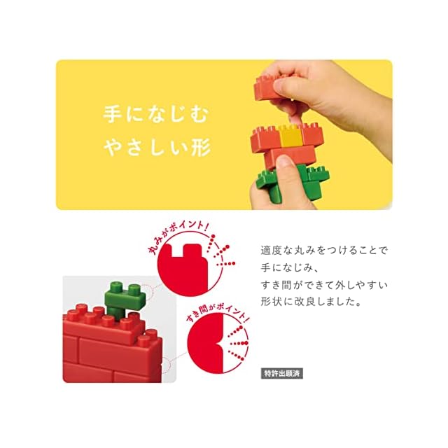 ■ブロックの角に丸みをつけたことで、子どもの力でも外しやすく、より組み立てやすくなりました。
