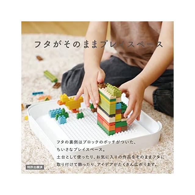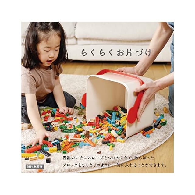 ■容器はお片付けをサポートできる形状になっており、フタの裏側にはブロックをはめることもできます。また、リビングになじむよう、外装は取り外しが可能です。