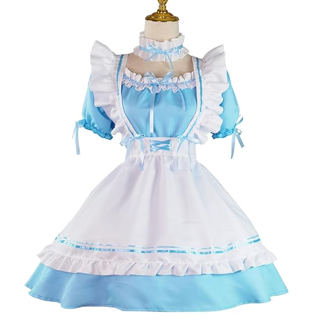 [ANONIE] メイド服 コスプレ仮装 初心者 セット かわいい コスチューム ホワイト+ブラック 豪華セット (blue, 2XL)