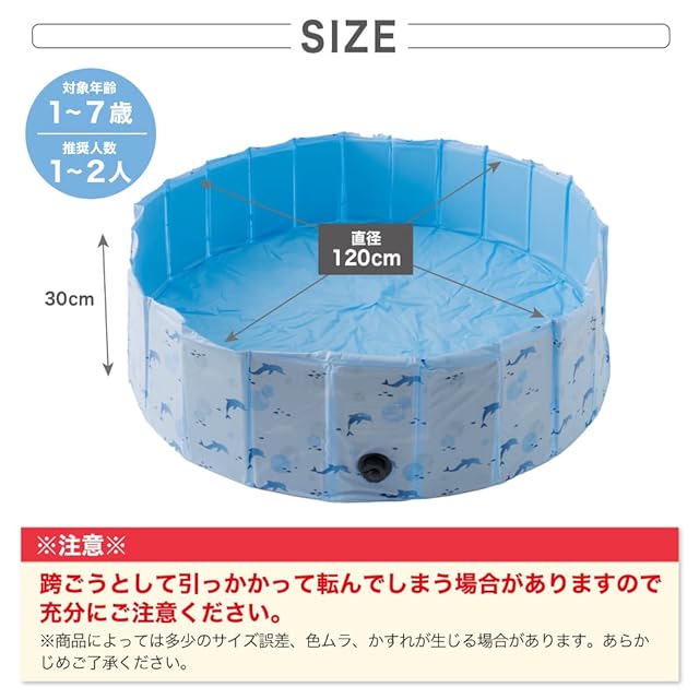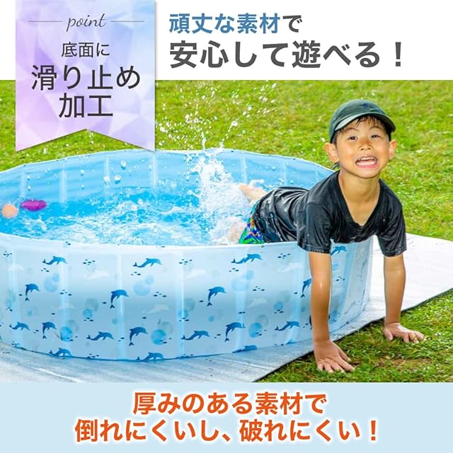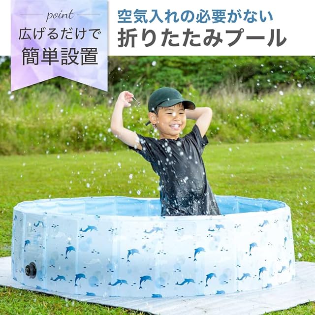 【 折りたたみプールとは 】折り畳みプールは数多く御座いますが、弊社の折りたたみプールはここが違います!1.「広げるだけで簡単に遊べる折りたたみプール」空気入れの必要がない折りたたみのプールなので、広げるだけで簡単に設置することが出来ます。 面倒な準備は必要ないので、水を入れてすぐにプールで遊べます!2.「小さく降りたためて収納に便利」折りたたみプールは小さくコンパクトに折り畳むことができるので、収納場所に困りません。持ち運びにも便利なので、いろいろな場所で遊びましょう!3.「用途もいろいろ!家でも外でも活躍してくれるプール」プールとして使う以外にも、ボールプールやペットバス、プレイマット、小物入れなどいろいろなシーンで大活躍。かわいいイルカやハートの柄なので写真でも映えます。