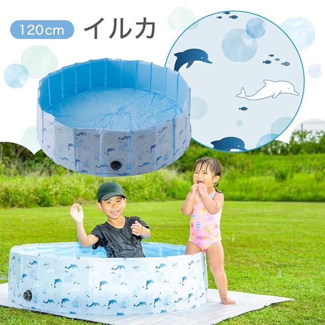 商品名:折りたたみ式 空気入れ不要 プール 【子供たちを笑顔にする】 犬用 ペット ビニールプール ベランダ 屋内 家庭用 120×30㎝ 160×30㎝ (120cm×30cm, イルカ)