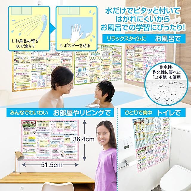 お風呂の学校 セット価格 中学受験マスター算数/算数テクニック お風呂ポスター2種類セット 日本製 算数 理科 学習 知育 B3サイズ 防水