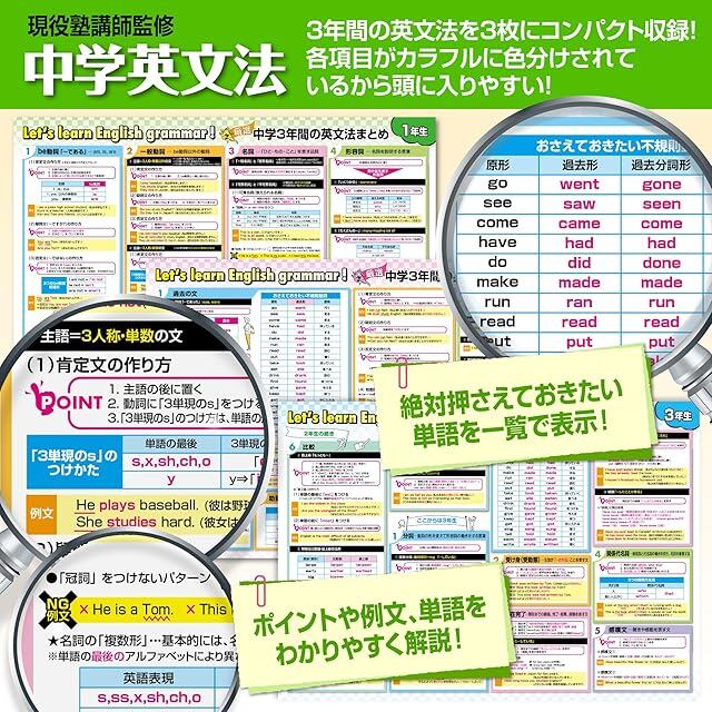 色:中学3年間の英文法/数学 お風呂ポスター2種類セット