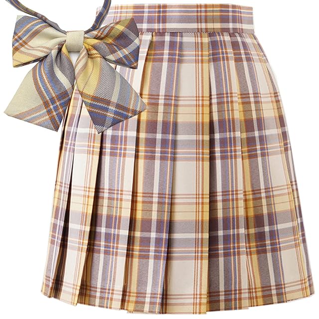 [HOLOUN] 制服 スカート ミニ プリーツスカート女子高生 JK 学生服 ハイウエスト コスプレ遊園地 学園祭 文化祭 パーティ チェック スカート(ヤマブキ, S) | Trend Design BASE店