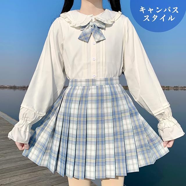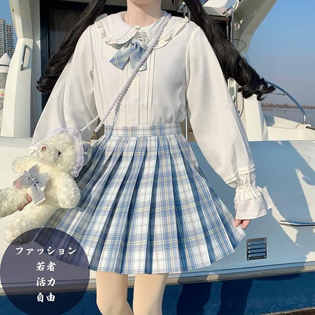 [HOLOUN] 制服 スカート ミニ プリーツスカート女子高生 JK 学生服 ハイウエスト コスプレ遊園地 学園祭 文化祭 パーティ チェック スカート(白い溟, 2XL)
