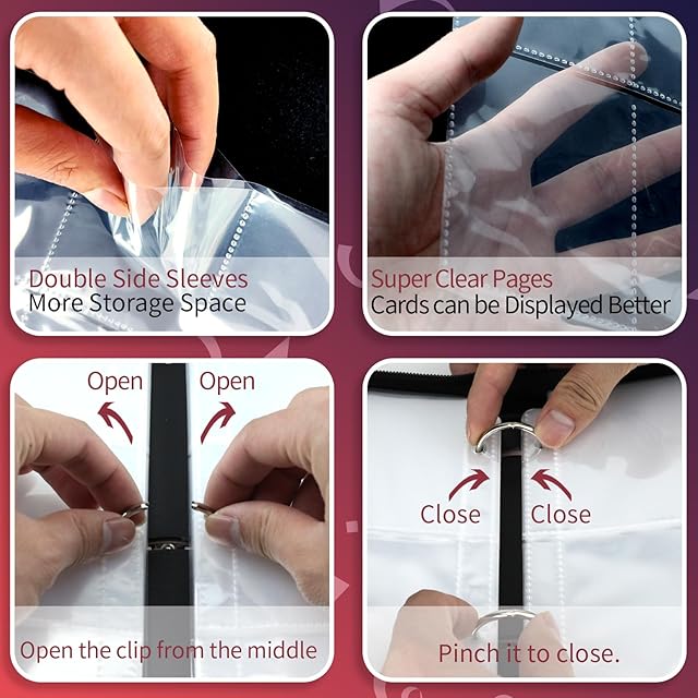 【超大容量900枚収納可能】 バインダー両面使用タイプ50枚付き(両面で100ページあります。)1ページには9枚のカードを収納できます。100ページで最大900枚まで収納でき、カードの挿入と取り外しが簡単です。カードを収納するのが楽しくなります。内部リングは3つあり、内部バインダーの数を自由に増やしたり変更したりできます。