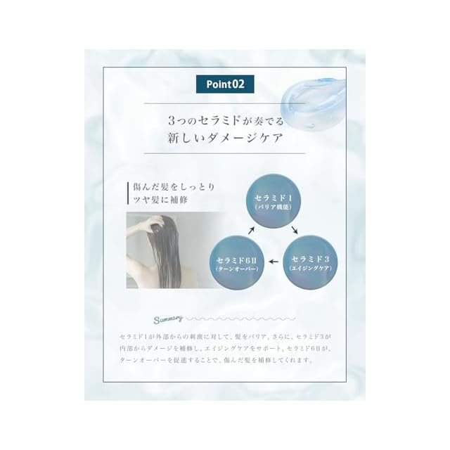 ✨【高保湿でしっとりツヤ髪】アミノ酸やセラミドなどの保湿成分が髪に潤いを与え、乾燥からしっかりガード。髪の内部まで深く浸透し、しっとりとしたツヤ髪を実現します。柔らかくまとまりやすい髪に仕上げます。