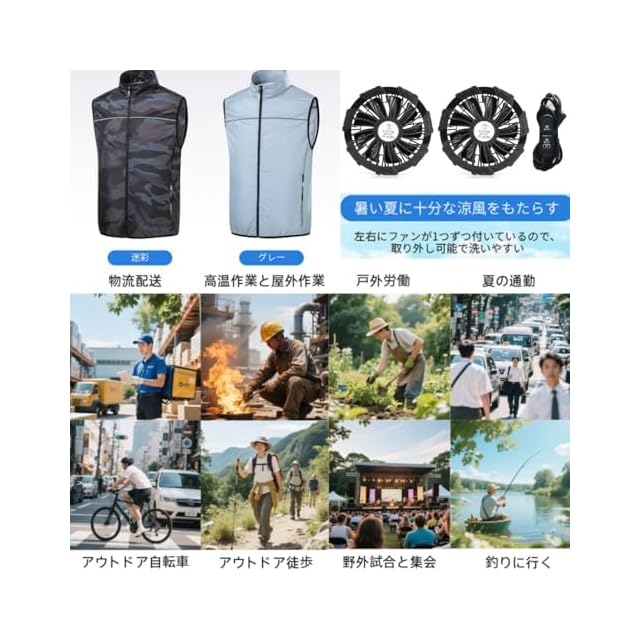 【いろんなシーンで活躍】カジュアルでも作業着ワークマンでも、このデザイン性の高さは様々なシーンで利用できます。普通の工事現場、農作業、運送業などの作業着としてはもちろん、釣り、登山、ゴルフ、キャンプ、サイクリング、アウトドア活動などのレジャー用の暑さ対策ウェアとしても完璧です。屋外などの高温環境の中に長時間いる場合でも熱中症のリスクを低下させることができます。
