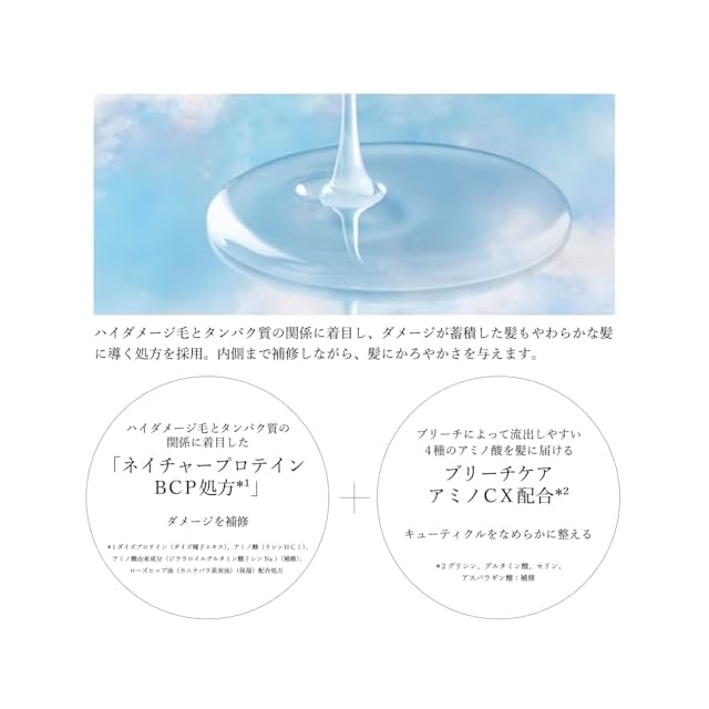【切れ毛・枝毛を防ぐ】ブリーチによって流出しやすい4種のアミノ酸(ブリーチケアアミノCX)配合で、キューティクルをなめらかに整える