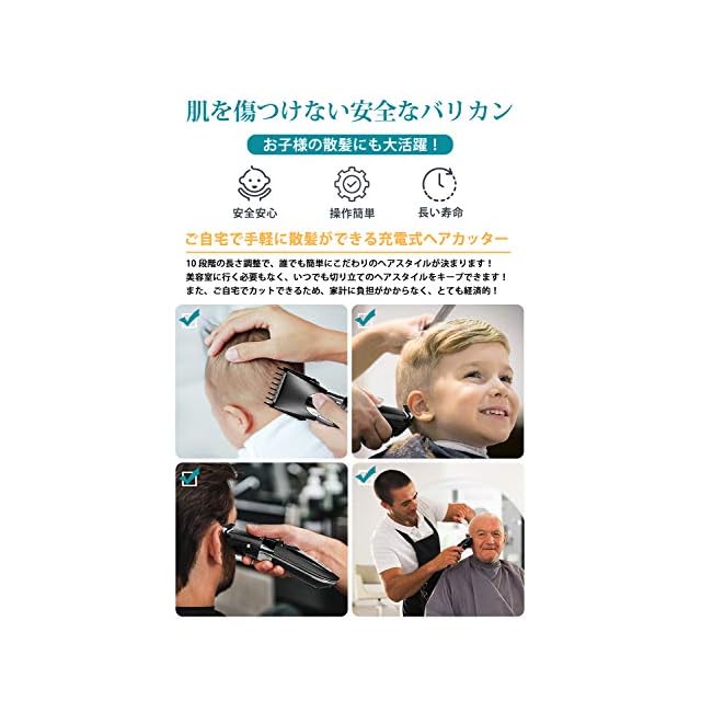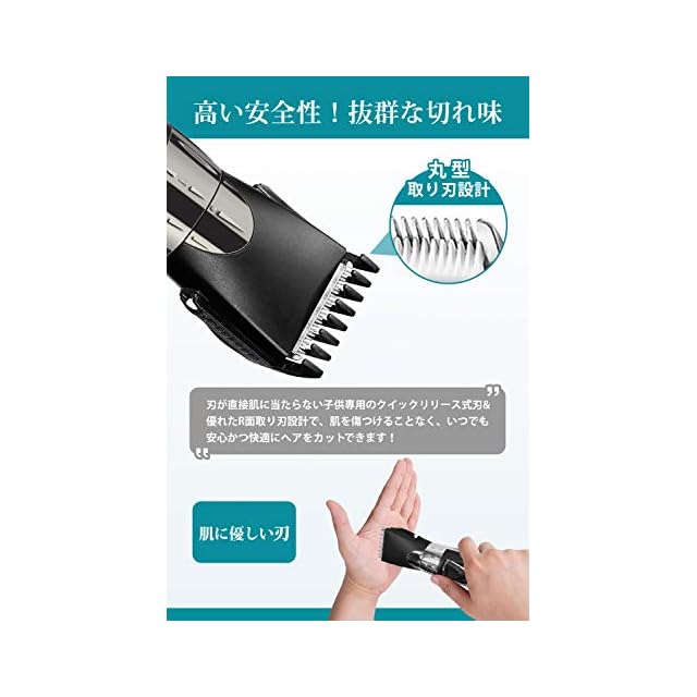 【最新改良版登場&切れ味抜群】業界バリカンの先駆者である弊社は品質にこだわり、従来のバリカンが抱えていた問題点を改善し、切れ味のよい45°鋭角刃を採用し、刃先段差が短いため、エリ足などの輪郭がよりはっきり仕上がります。また髪を逃しにくく、刈り残しを低減することでスピーディーにスタイリングできます。刃の先端は子供専用の良質なステンレス刃と優れたなR面取り刃設計で、滑らかで、剃り効率が高い、肝心な切れ味は素敵、さびなどの心配もなくので長持ちできます。カット性能が良く、髪に絡まずスムーズな切れ味です