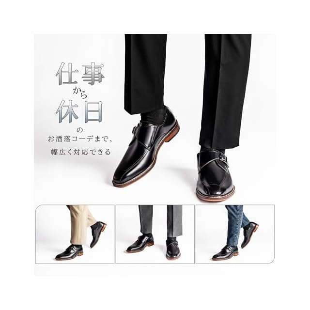 モンクストラップのモンクストラップ部分のアクセントはおしゃれで、ダブルストラップは開けなくでも、履き脱ぎは楽チンなビジネスシューズです。★モンクストラップの特徴としては、 リーズナブルで丈夫で、デザインもまあ綺麗で、実用性が高い!