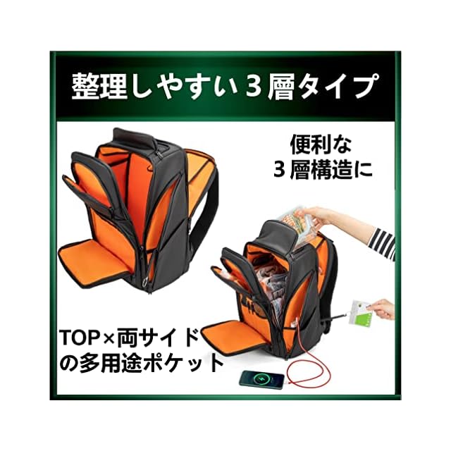 商品名:[ABIBA] リュック メンズ ビジネリュックサック 弁当入れ スクエア 大容量 PC 通学 通勤 出張 USB充電ポート 黒 型崩れ防止 (ブラック412)
