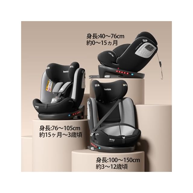 商品名:heekin チャイルドシート 360°回転式 ISOFIX固定 R129適合(i-Size) 新生児から12歳までのお子様に最適,角度調整(ブラック)