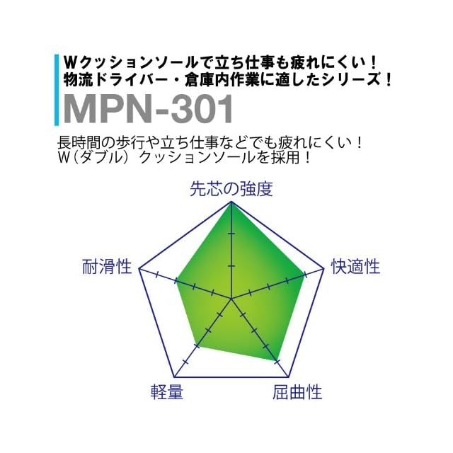 《運送業などフットワークが求められる職場に、ワークプラス》運送業や各種サービス業のために開発された先芯入りスニーカーです。 《Wクッションソールで立ち仕事も疲れにくい》長時間の歩行や立ち仕事などでも疲れにくい、W(ダブル)クッションソールを採用しました。 【適した用途:倉庫内作業、物流ドライバーなどに】