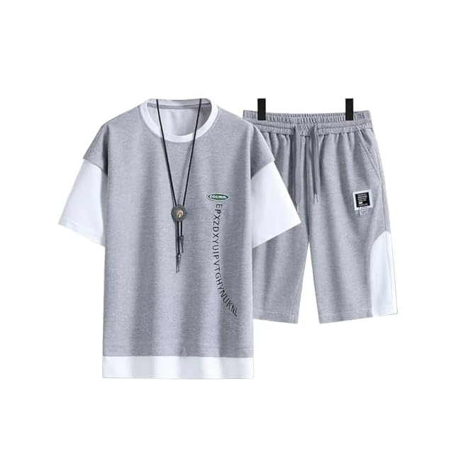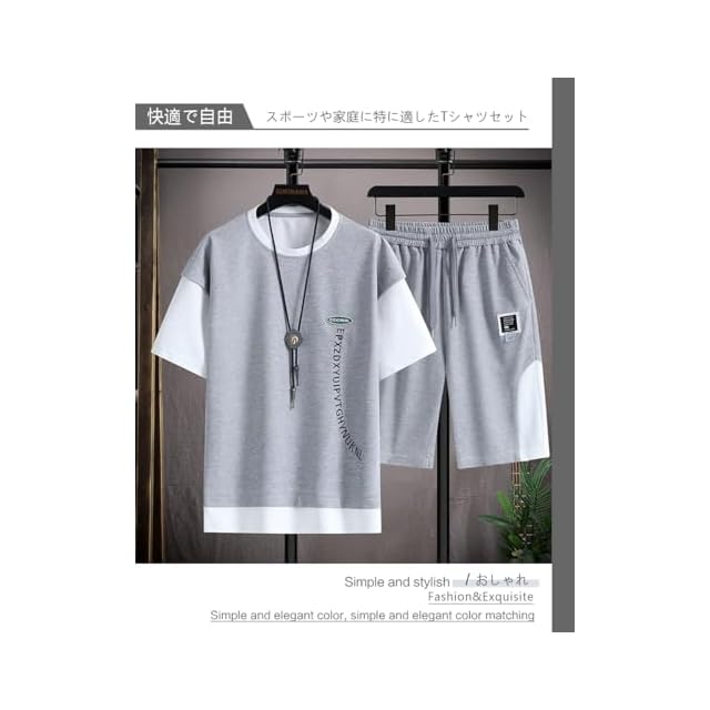 [SUKINANA] tシャツ メンズ 上下セット 通気防臭 スポーツウェア 吸汗速乾 夏服 ゆったり 快適 おしゃれ カジュアル ジャージ 上下 セット (4XL, グレー) | Trend Design BASE店