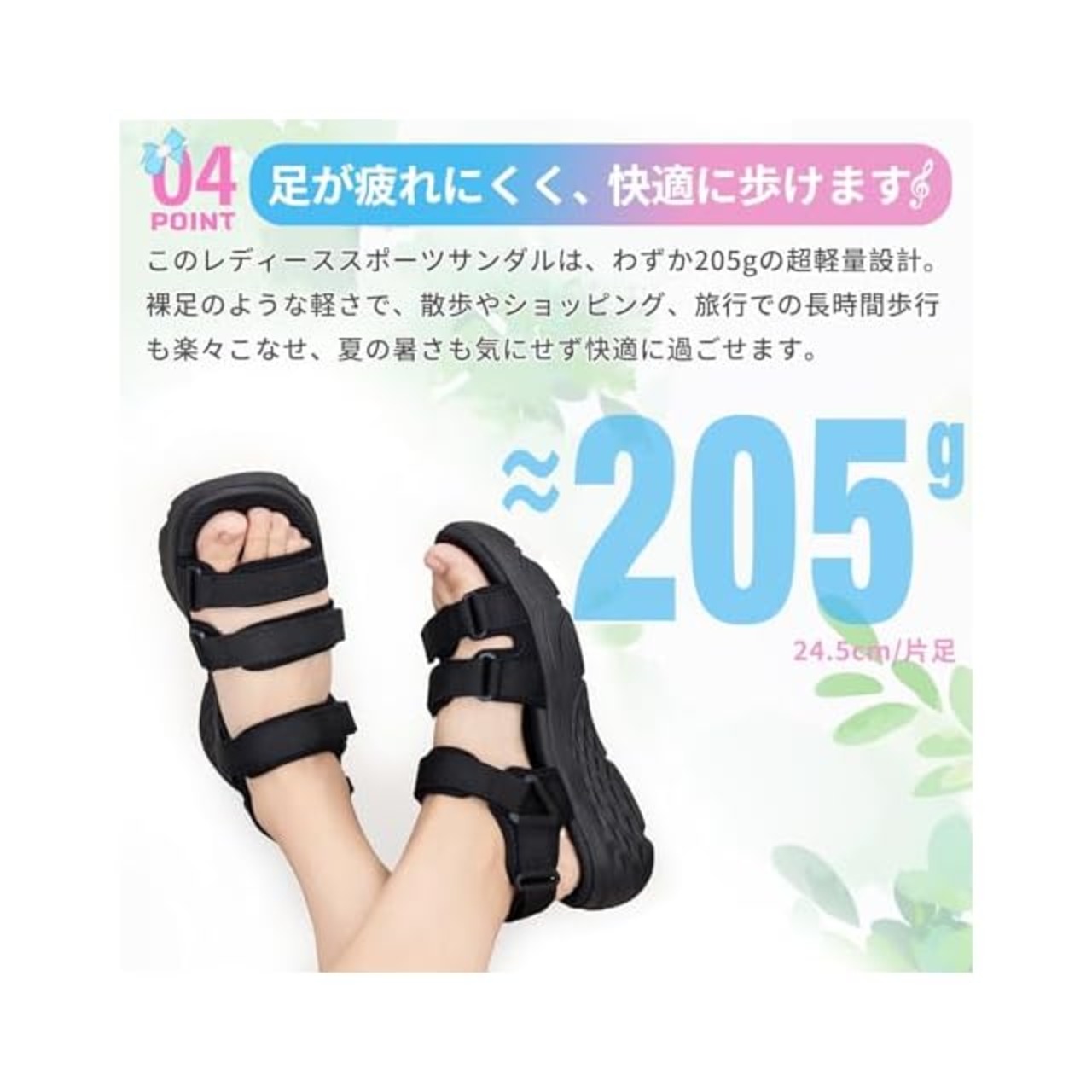 【かわいいスタイリッシュ 軽量で歩きやすい】この女性用厚底スポーツサンダル、可愛くておしゃれなデザインでありながら、シンプルで魅力的です。片足約180gの軽量設計,長時間の歩行も快適。ソールの高さは4cmで、適度な体格比率をアップし、美脚効果を実現、自信を増強します。履き心地の良さとスタイルアップを両立!夏に欠かせない1足です。