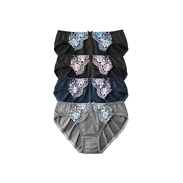 豪華な花柄刺しゅうが施されたショーツが、色違いの4枚セットで毎日使いに最適です。