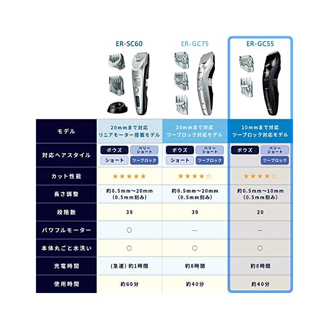 商品名:パナソニック ヘアカッター バリカン ツーブロック対応 充電・交流式 黒 ER-GC55-K