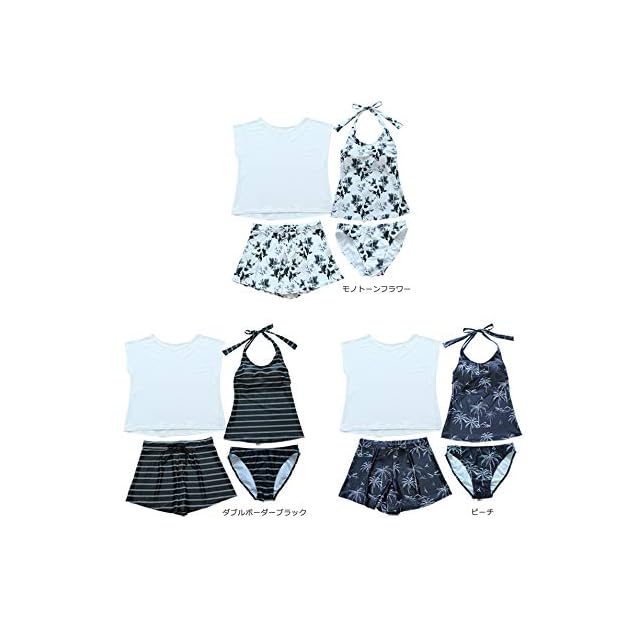 ○Tシャツ、トップス、パンツ、ショーツの体型カバー水着4点セット。水着はセパレート型で、タンクトップとボトムスに分かれているタンキニタイプです。 ○【バスト】商品にパットは付属しています。またパットポケット付きでバストをしっかりホールドしてくれます。長めの丈でお腹周りもしっかりカバー! ノンワイヤーでストレスフリーで快適です。ワイヤーが苦手でもOK! 快適でフィット感抜群の着心地で、アクティブな動きにもしっかりフィットします。 ○【Tシャツも付属】全て水着素材で作られているので着用したまま、水にはいることができます。お手持ちの水着に合わせても使えるため1枚あると重宝するアイテム! ○【ショートパンツ】ショートパンツで下半身の体型をしっかりカバー! 紐でサイズ調整も可能です。 お洋服のような着こなしで、お家からそのままおでかけもOK! ○サイズ:S,M,L,LL,3L
