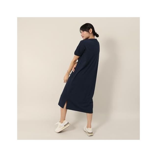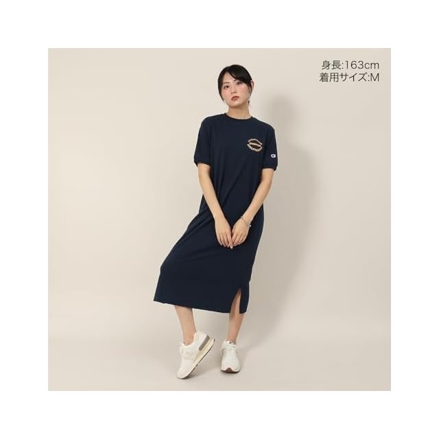 [チャンピオン] シャツワンピ 半袖 クルーネック COTTON USA ラバープリント ガーメントウォッシュ ボーダーワンピースドレス ウィメンズカジュアル CW-B315 ネイビー L