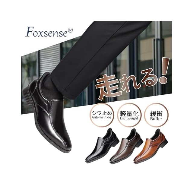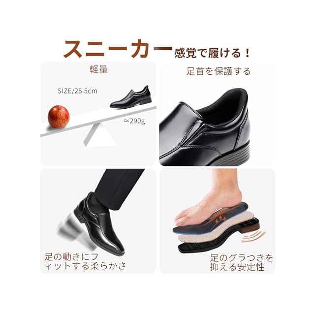 商品名:[フォクスセンス] ビジネスシューズ 【立ったままスッと履ける】 革靴 メンズ 走れる ローファー ドレスシューズ 本革 ウォーキング スニーカー 高级紳士靴 歩きやすい 防滑 軽量 通気性 防水 高級レザー 着脱らく フォーマル ブラック 25.5CM QS2320-01