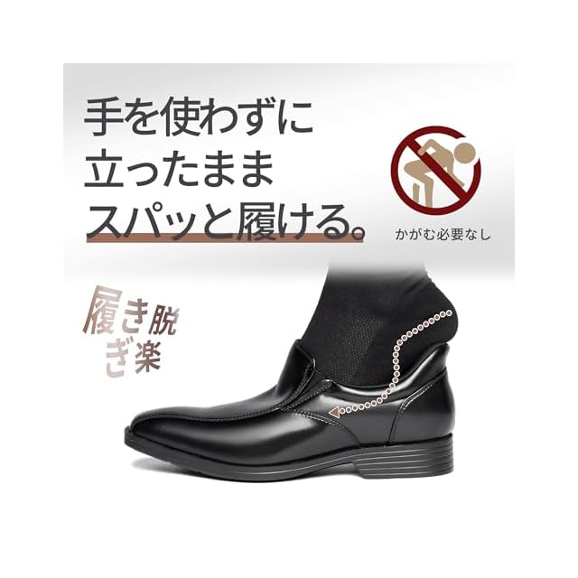 【サイズ】通常のビジネスシューズと同じサイズをおすすめします。幅狭い方は-0.5cmのサイズをおすすめします。【立ったままスッと履ける】手を使わず、腰をかがめることなく、楽に靴を履くことができます。忙しい時も簡単すぽっ!通勤、散歩、ショッピング、旅行、キャンプ、入院などのシーンで利用できます。