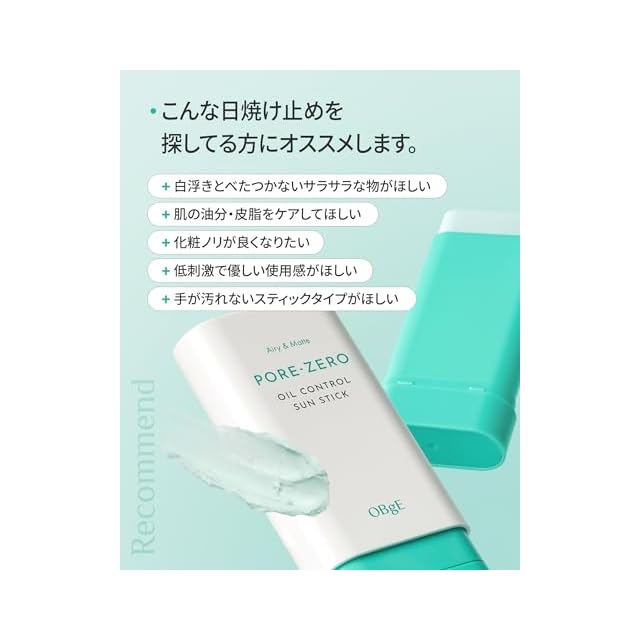 [NEWリニューアル]OBgE(オブジェ)【日焼け止め 化粧下地】毛穴ゼロオイルコントロールサンスティック UVカット 紫外線 べたつかなく サラサラ 化粧ノリ 透明感 低刺激 顔 全身用 敏感肌 脂性肌 皮脂テカリ崩れ防止 毛穴カバー SPF50+ PA++++ | Trend Design BASE店