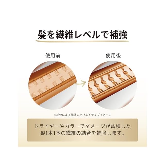 うるおいユースセラム処方:弱くなった髪の内側からボンドリペア成分が浸透。髪の大事な成分と同じような働きをすることで、髪内部の繊維を補強し、結びつきを強めます。