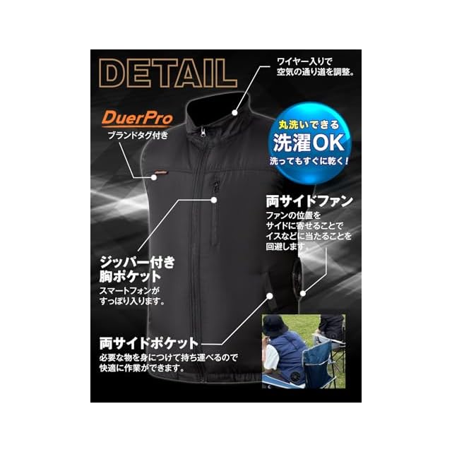 商品名:[Duerfusa] 空調ウェア ファンバッテリーセット ファン付きベスト バッテリー付き(ブラック/L)